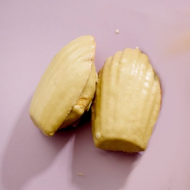 Färdiga Madeleinekakor glaserade med smaksatt nontemp.